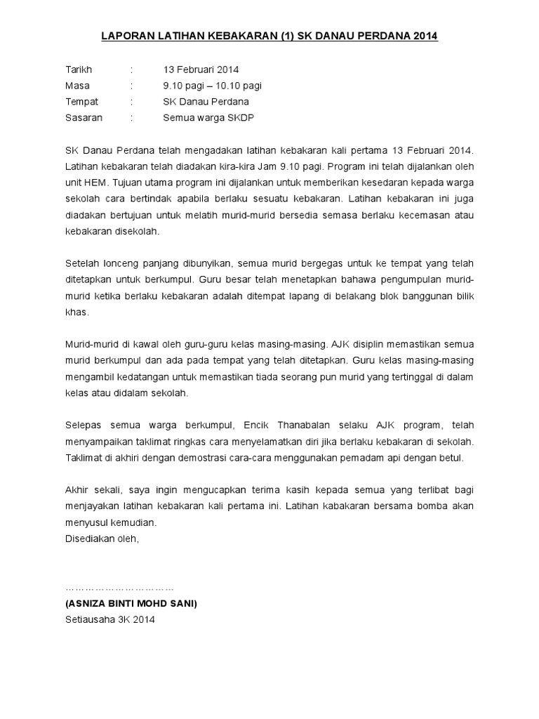 Contoh laporan TRANSCRIPT BIL. Memberikan kesedaran kepada warga. Inilah contoh laporan kegiatan pelatihan pemadam kebakaran dan hal lain yang berhubungan erat dengan contoh laporan kegiatan pelatihan pemadam kebakaran serta aspek.